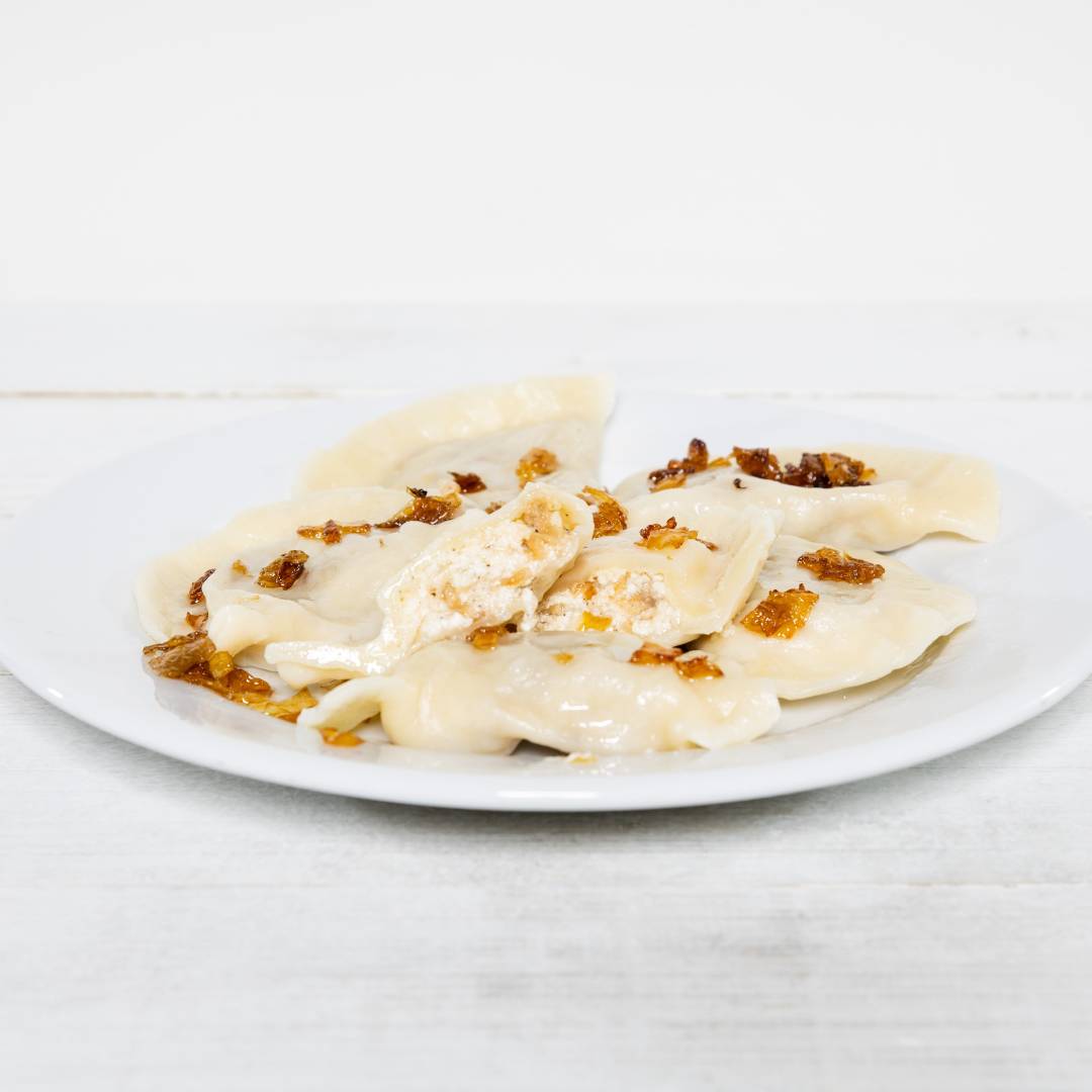 Sklad:mąka pszenna,woda,jaja,farsz(34%):ser biały(60%),ziemniaki(35%),cebula,olej rzepakowy,pieprz,sól.