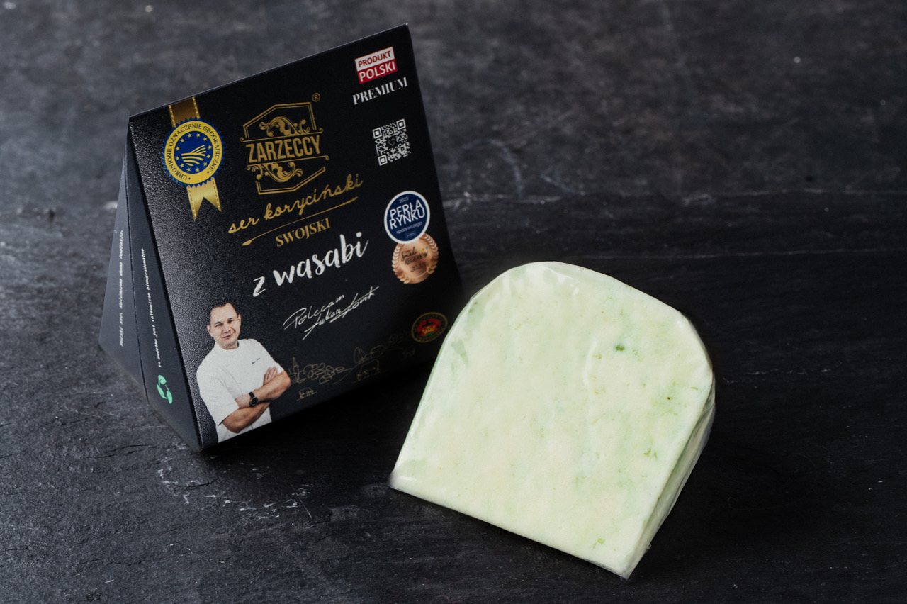 Oto coś dla prawdziwych poszukiwaczy kulinarnych wrażeń – Ser Koryciński Swojski Zarzeccy z Wasabi z linii Premium. To niezwykłe połączenie tradycji Podlasia z orientalną nutą pikantnego wasabi, które nadaje serowi wyrazistości i niepowtarzalnego charakteru.