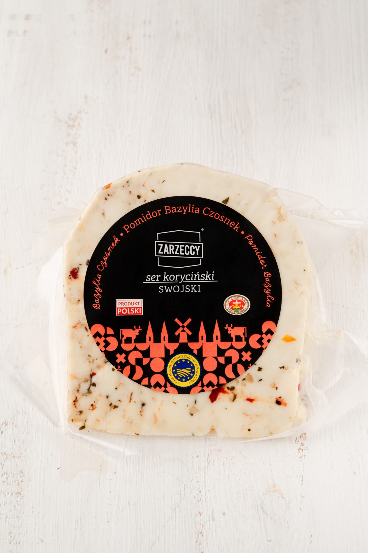Ser Koryciński Swojski Zarzeccy z Pomidorem, Bazylią i Czosnkiem -ok 260 g
